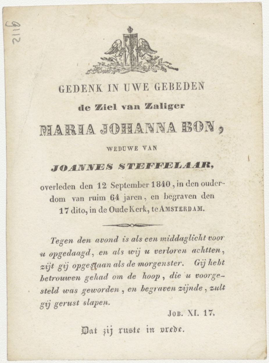 H. Petrus (Frans), kz. Bid voor ziel Bon-steffelaar (+1840) Amsterdam