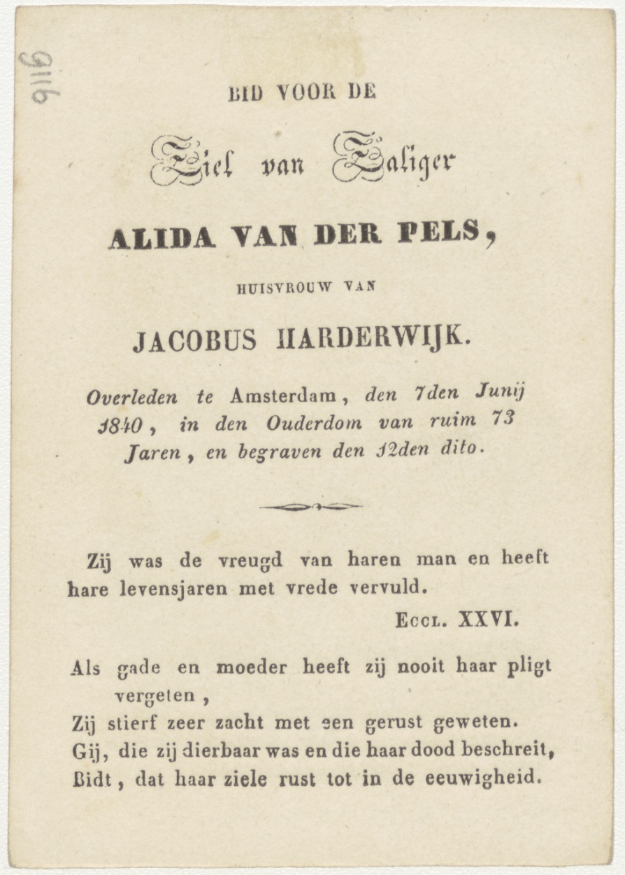 Christus valt ten tweede male, kz. Bid voor ziel Van der Pels-Harderwijk (+1840) Amsterdam