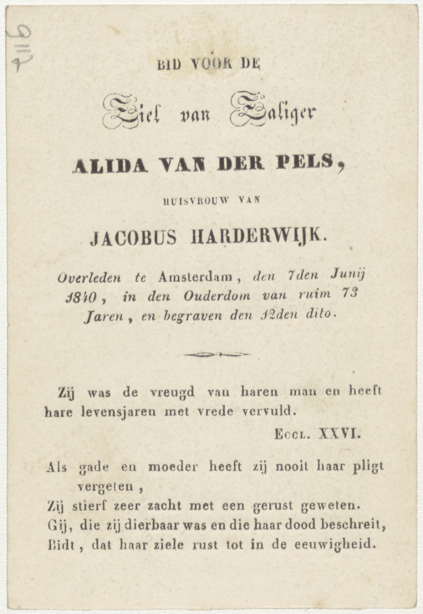 Christus troost de Jeruzalemse vrouwen, kz. Bid voor ziel Van der Pels-Harderwijk (+1840) Amsterdam