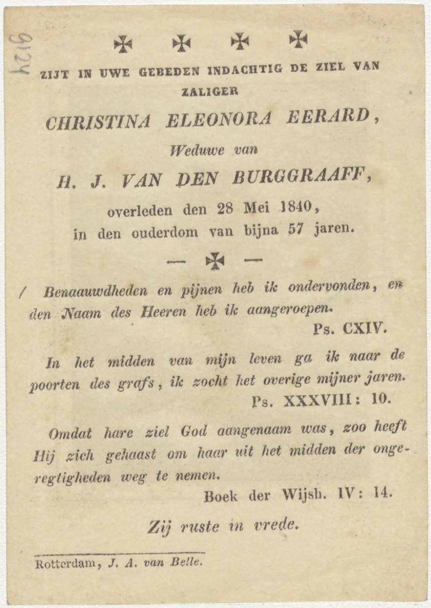 Kelk op kruis, kz. Bid voor ziel Eerard-van den Burggraaff (+1840)