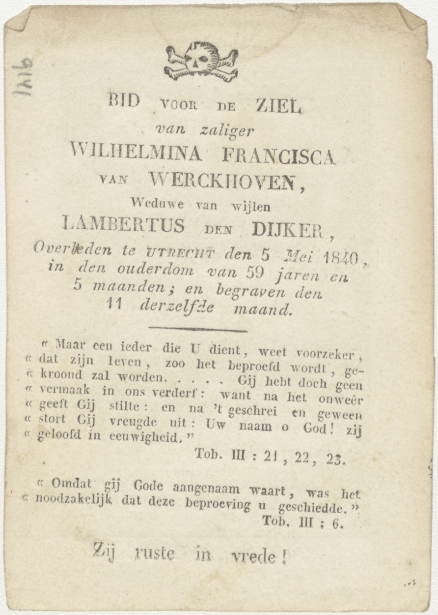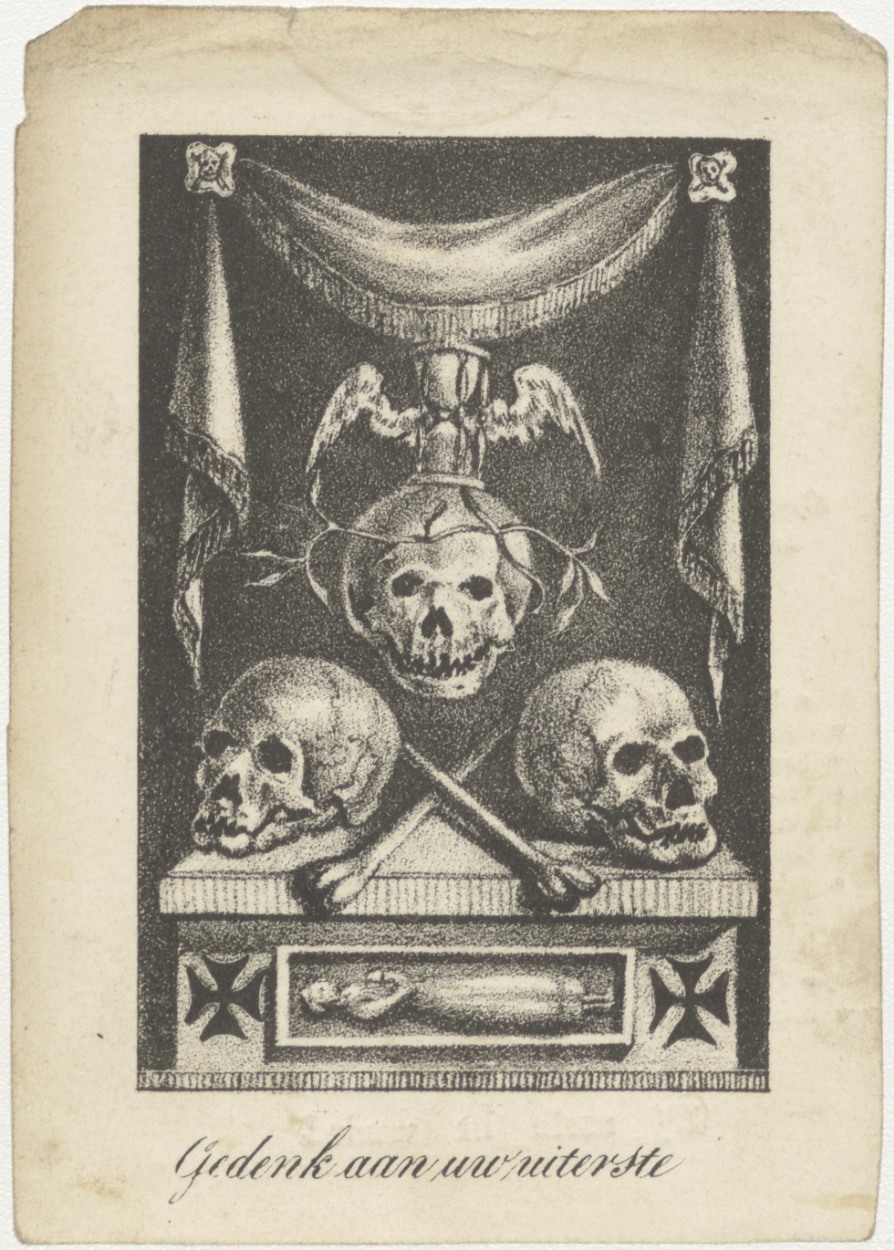 Schedels: gedenk aan uw uitersten, kz. Bid voor ziel; van Werckhoven-den Dijker (+1840) Utrecht