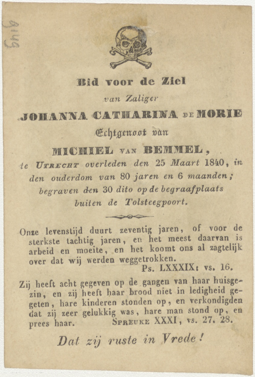 Passiescène (12e statie) Jezus bidt al stervende voor zijn kruisigers, kz. Bid voor ziel Van Bemmel-de Morie (+1840) Utrecht