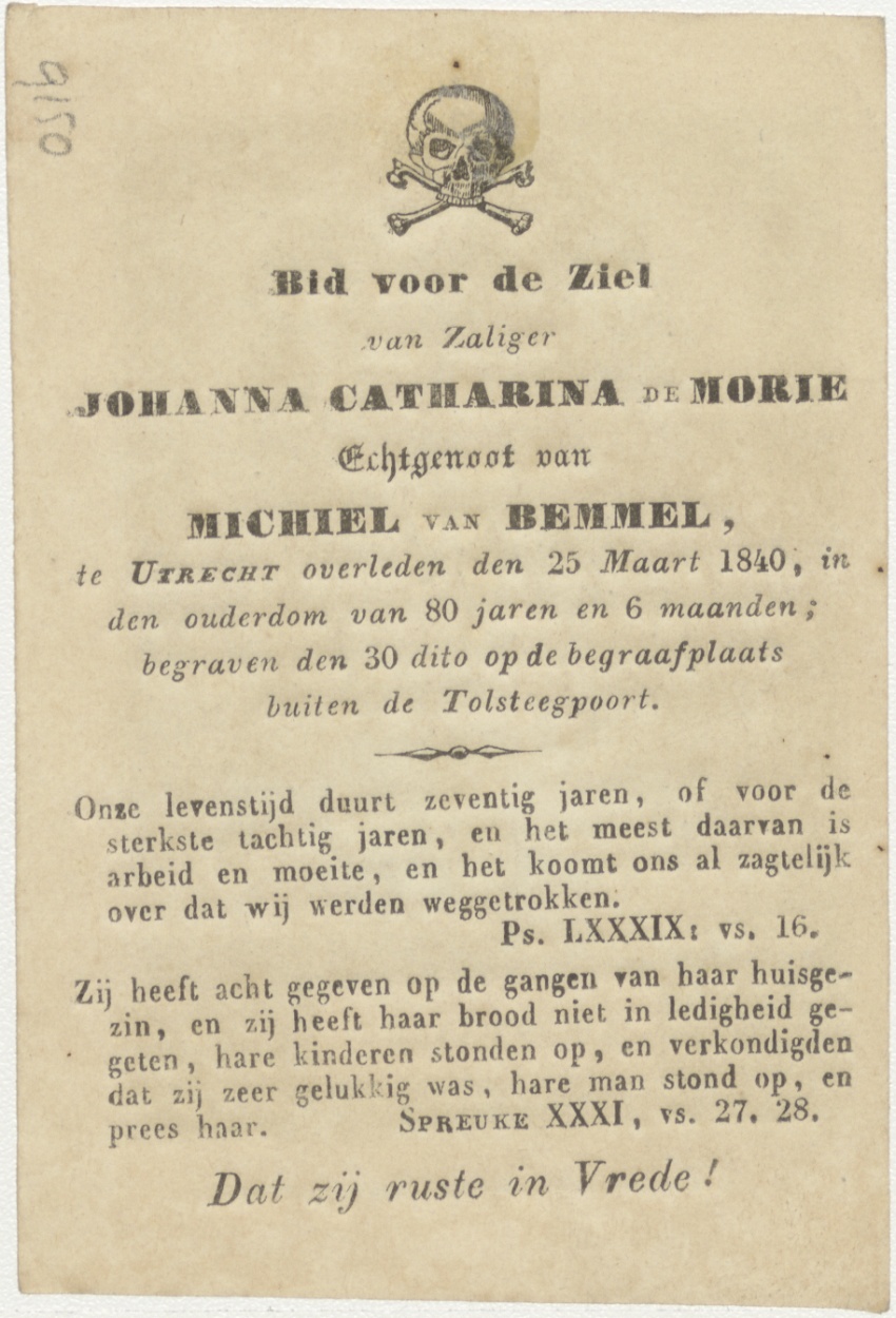 Passiescène (13e statie) Christus wordt van het kruis genomen, kz. Bid voor ziel Van Bemmel-de Morie (+1840) Utrecht