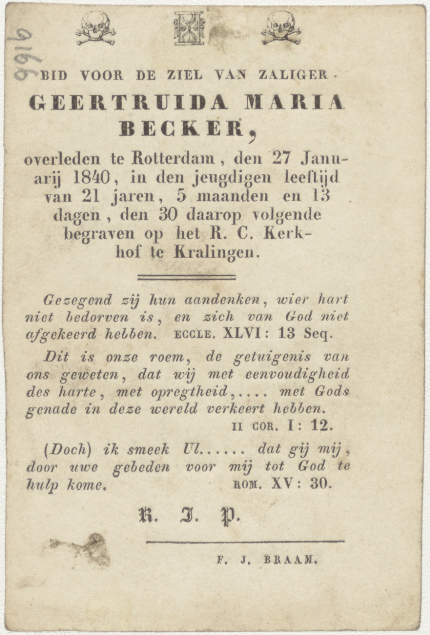 H. Maria, kz. Bid voor ziel Becker (+1840) Rotterdam