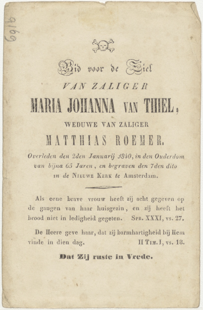 H. Emellie (Frans), kz. Bid voor ziel Van Thiel-Roemer (+1840) Amsterdam