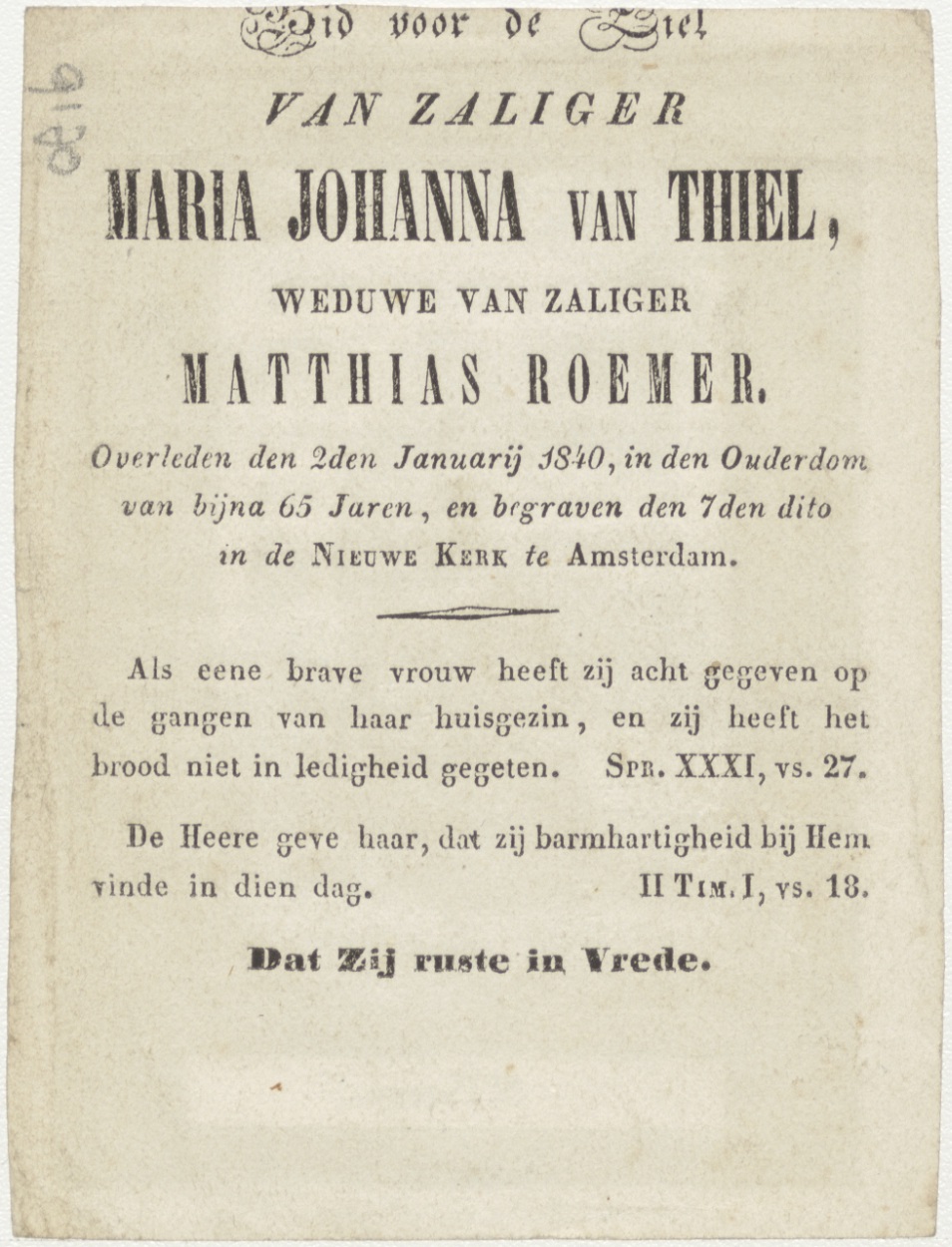 H. Petrus (Frans), kz. Bid voor ziel Van Thiel-Roemer (+1840) Amsterdam