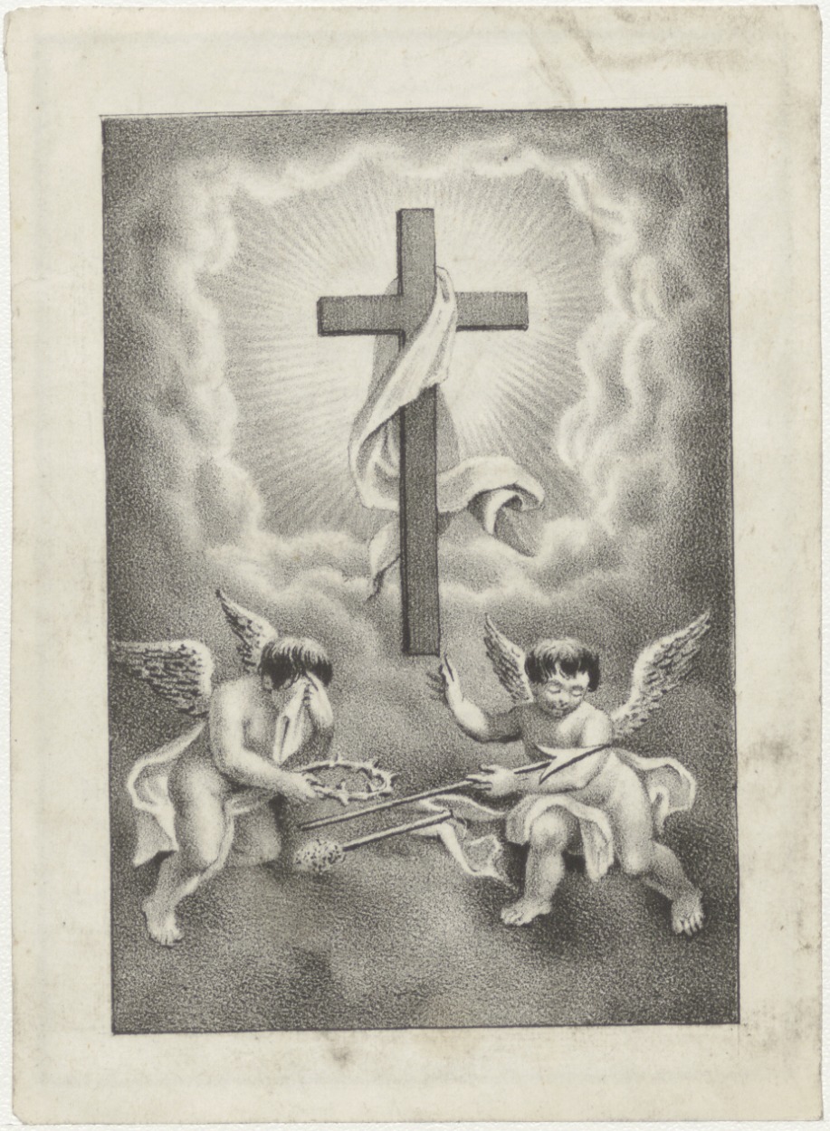 Kruis met engelen, kz. bid voor ziel Ernestus Schade van Westrum (+1842) Utrecht, begraven Amsterdam