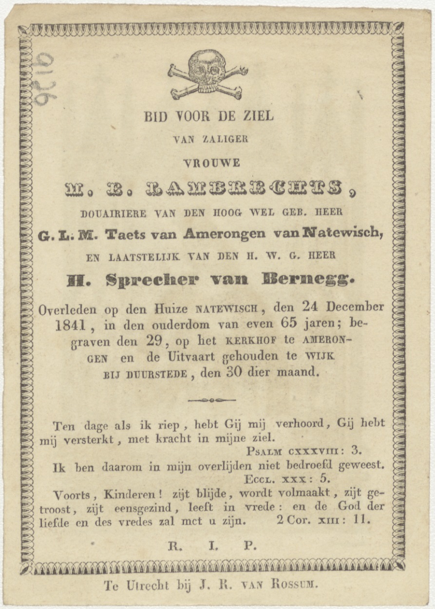 H. Ursula, kz. Bid voor ziel Taets van Amerongen-Lambrechts (+1841) Natewisch Wijk bij Duurstede