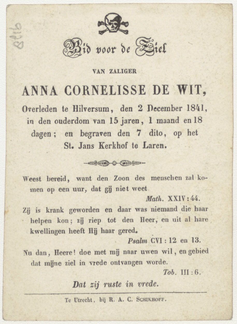 H. Clara, kz. Bid voor ziel De Wit (+1841) Hilversum