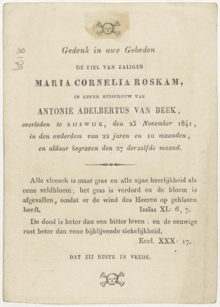 H. Josephie (Frans), kz. Bid voor ziel Roskoma-van Beek (+1841) Rijswijk