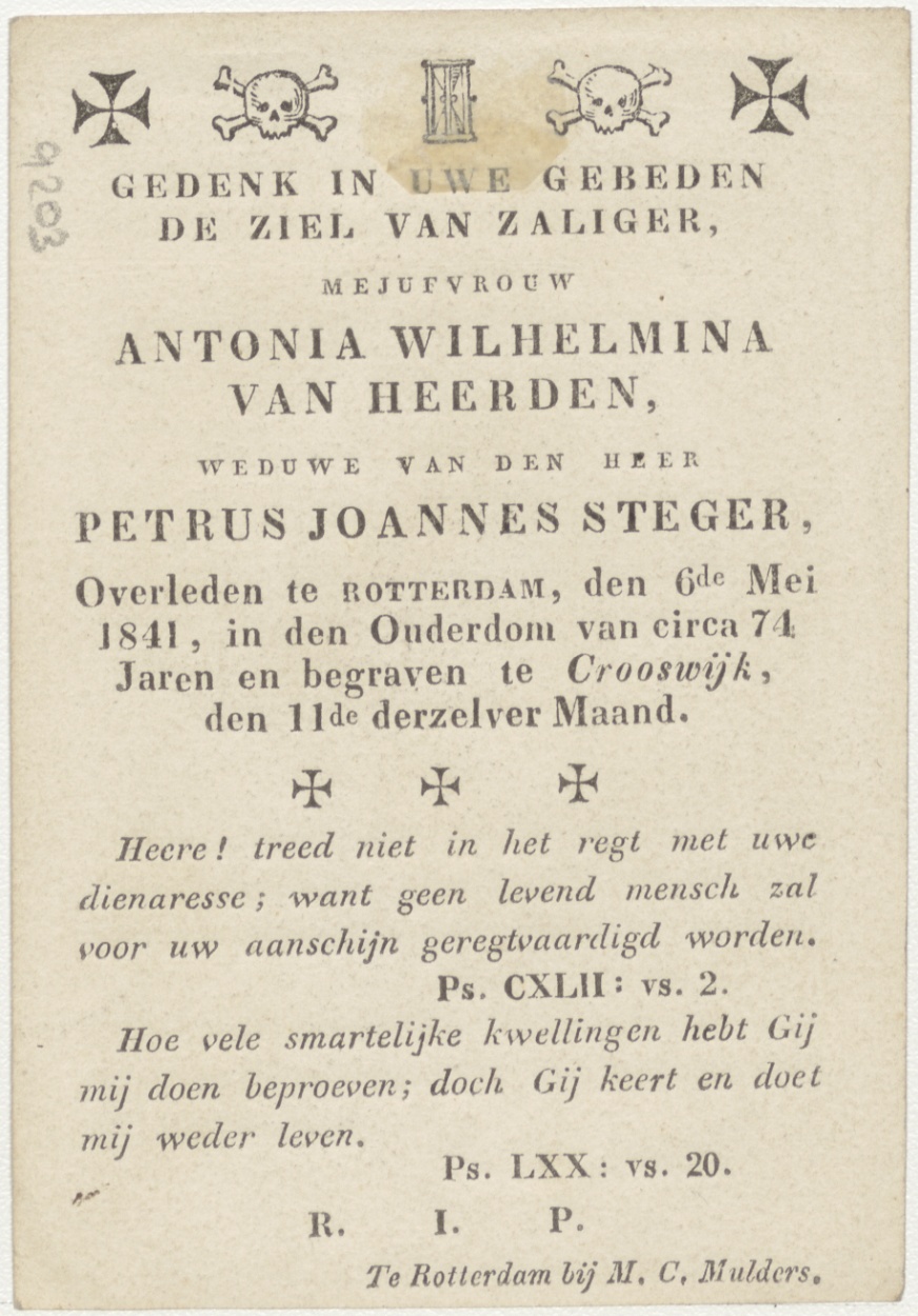 H. Ursulia, kz. Bid voor ziel Steger-van Heerden (+1841) Rotterdam