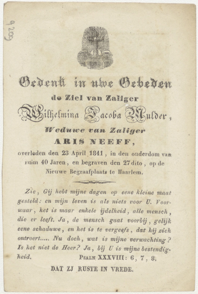 Prediking van Petrus (Frans), kz. Bid voor ziel Neeff-Mulder (+1841) Haarlem