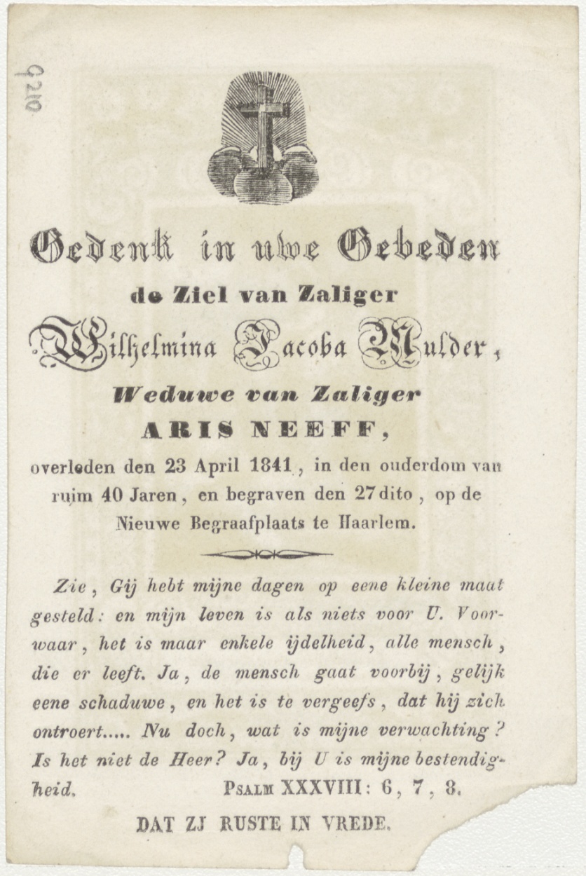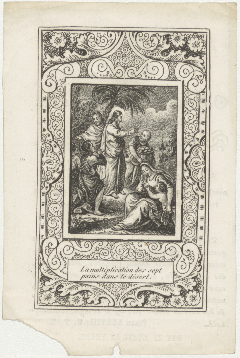 Wonder van Christus wonderbaarlijke broodvermenigvuldiging (Frans), kz. Bid voor ziel Neeff-Mulder (+1841) Haarlem