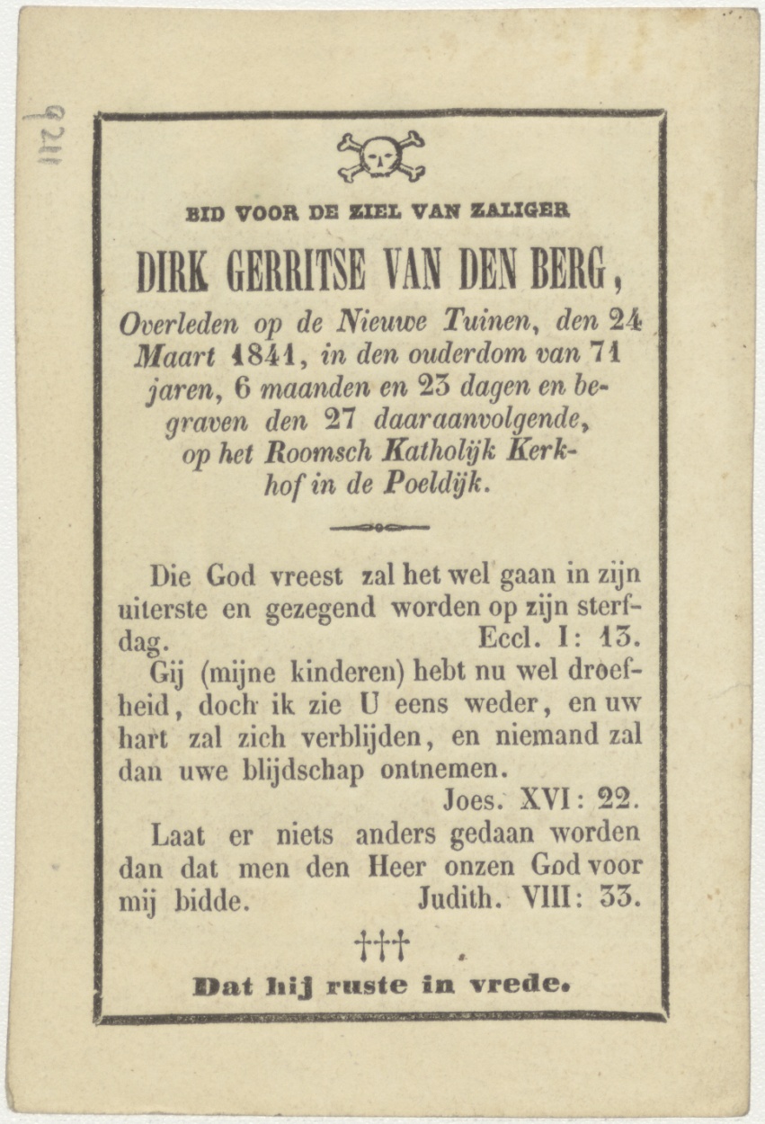 H. Veronika, kz. Bid voor ziel Van den Berg (+1841) nieuwe tuinen