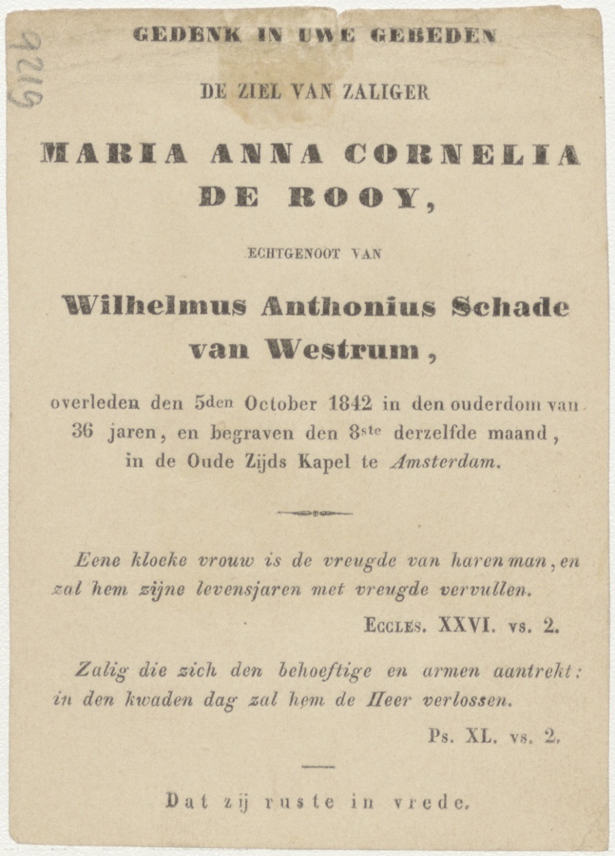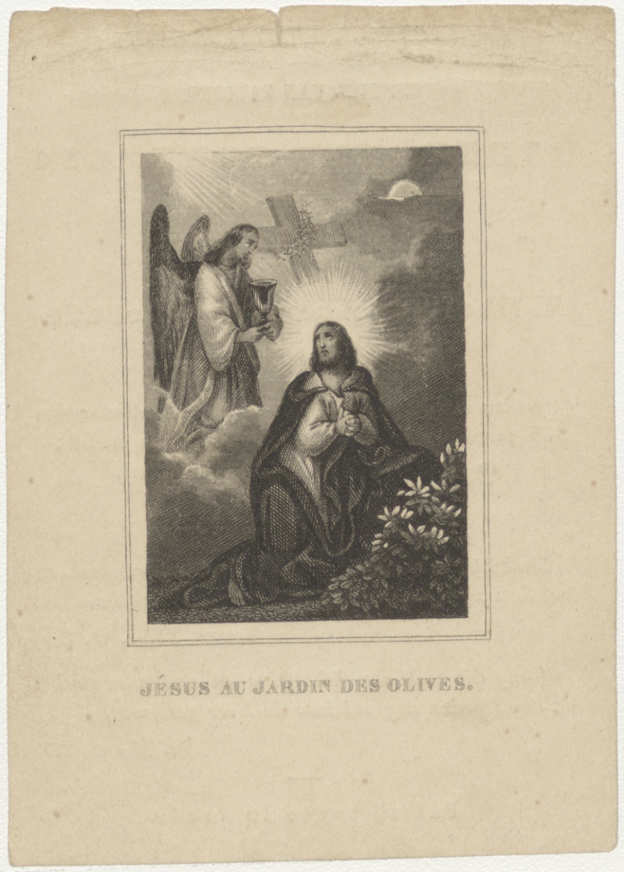 Christus ontvangt het H. Sacrament in de hof van olijven (Frans), kz. Bid voor ziel Maria Anna Cornelia de Rooy (+1842) Amsterdam, weduwe van Wilhelmus Antonius Schade van Westrum