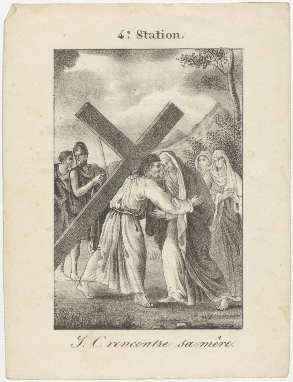 Passiescène (4e statie) Christus ontmoet zijn moeder (Frans), kz. Bid voor ziel Harderwijk (+1842) Amsterdam