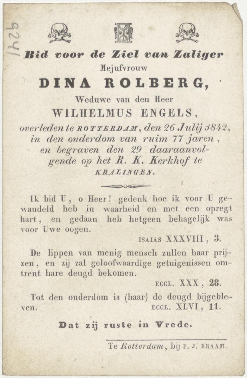 Allegorie op de hoop, kz. Bid voor ziel Rolberg-Engels (+1842) Rotterdam