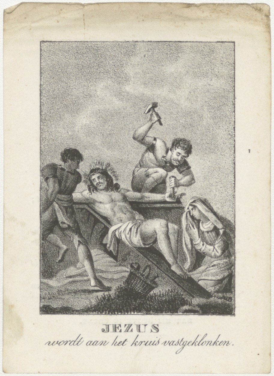 Christus wordt aan het kruis genageld, kz. Bid voor ziel Binneveld (+1842) Rotterdam