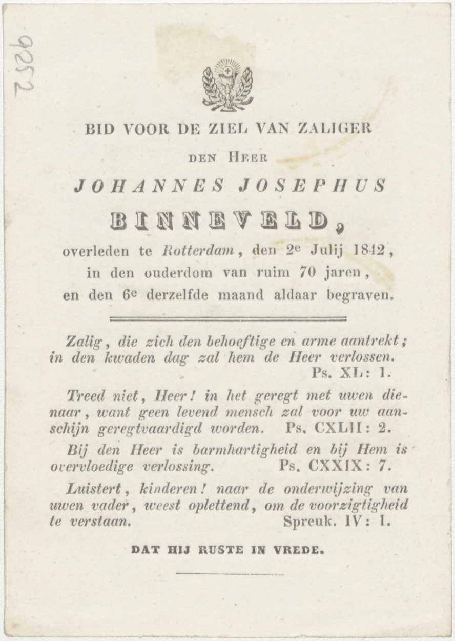 Graflegging van Christus, kz. Bid voor ziel Binneveld (+1842) Rotterdam