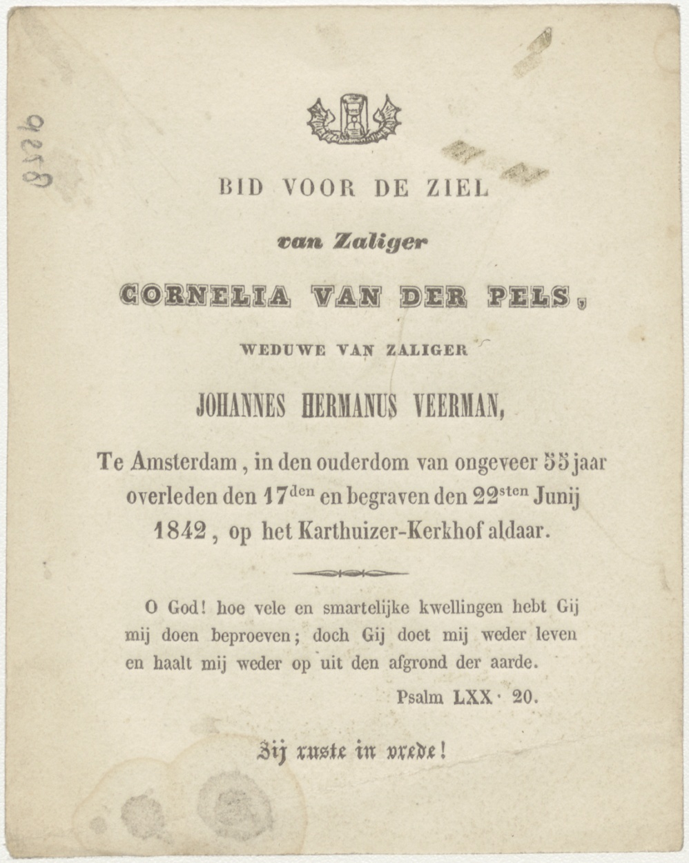 H. Stanislaus Kostka, kz. Bid voor ziel Pels-Veerman (+1842) Amsterdam