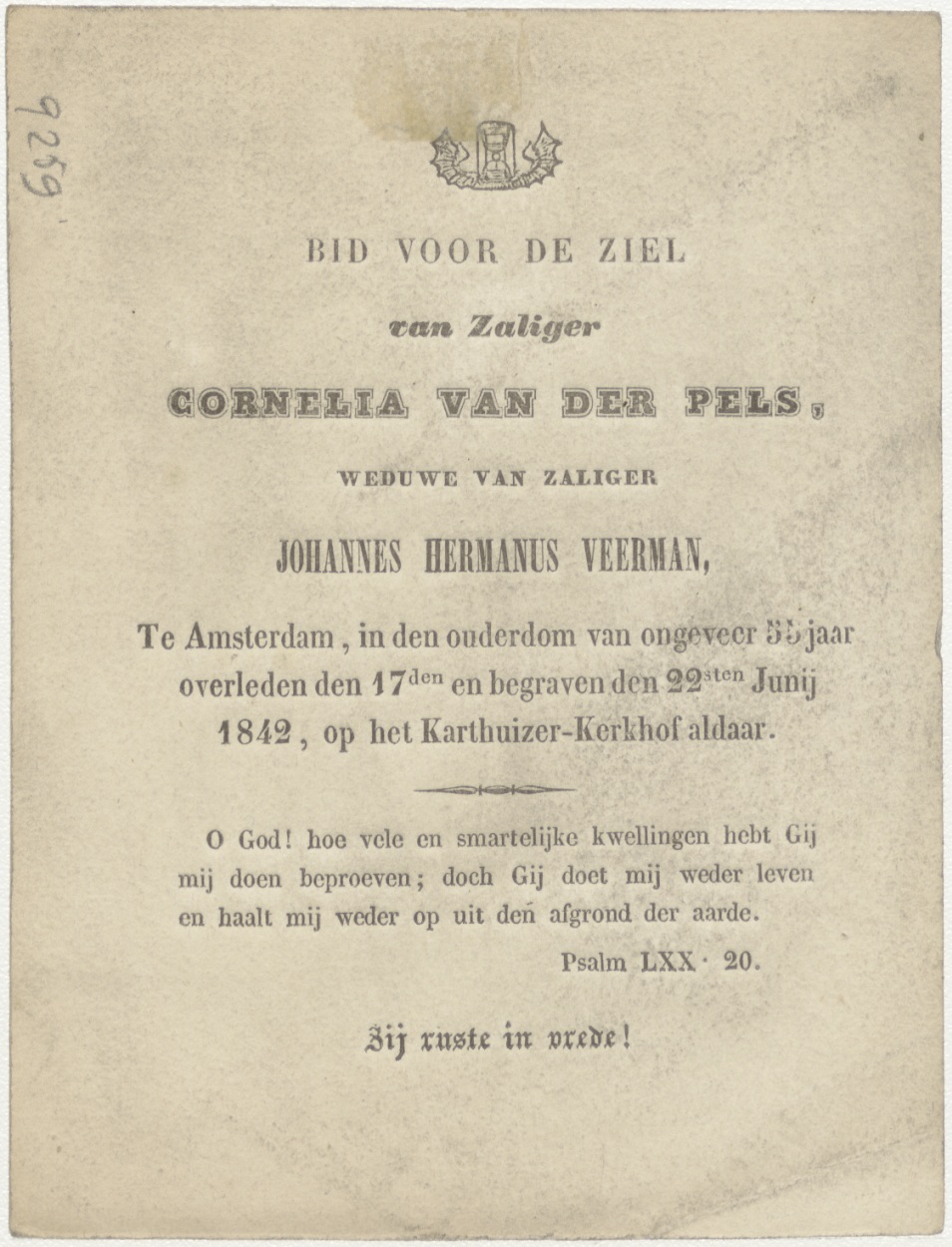 H. Michael, kz. Bid voor ziel Pels-Veerman (+1842) Amsterdam
