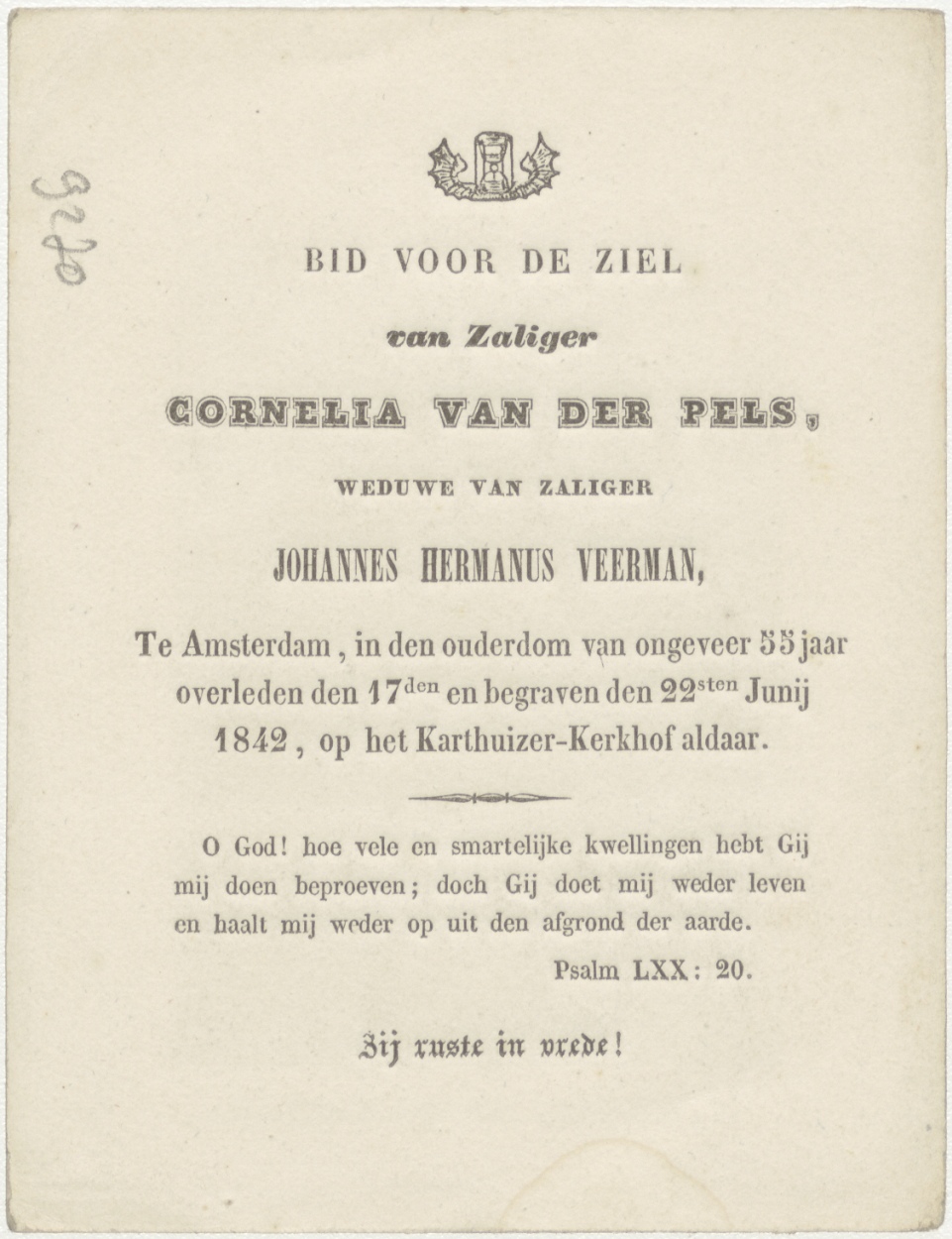 H. Engelbewaarder, kz. Bid voor ziel Pels-Veerman (+1842) Amsterdam