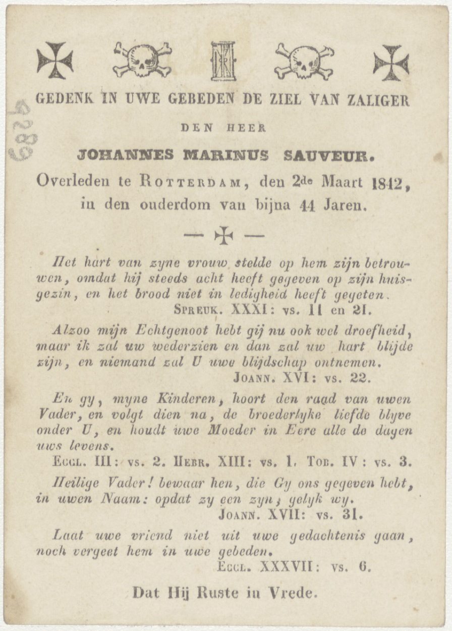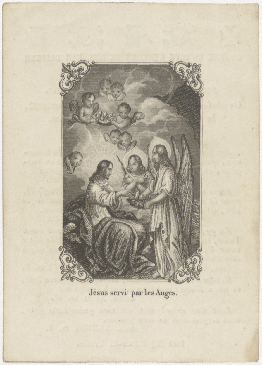 Christus bedient door engelen (Frans), kz. Bid voor ziel Sauveur (+1842) Rotterdam
