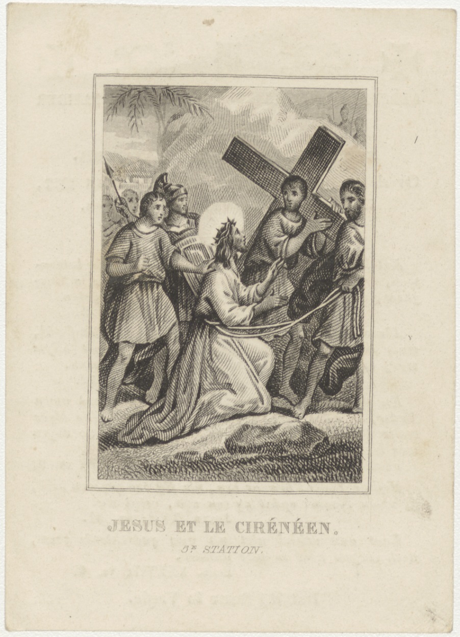Passiescène (5e statie) Christus en de Simon Cirener (Frans), kz. Bid voor ziel Sauveur (+1842) Rotterdam
