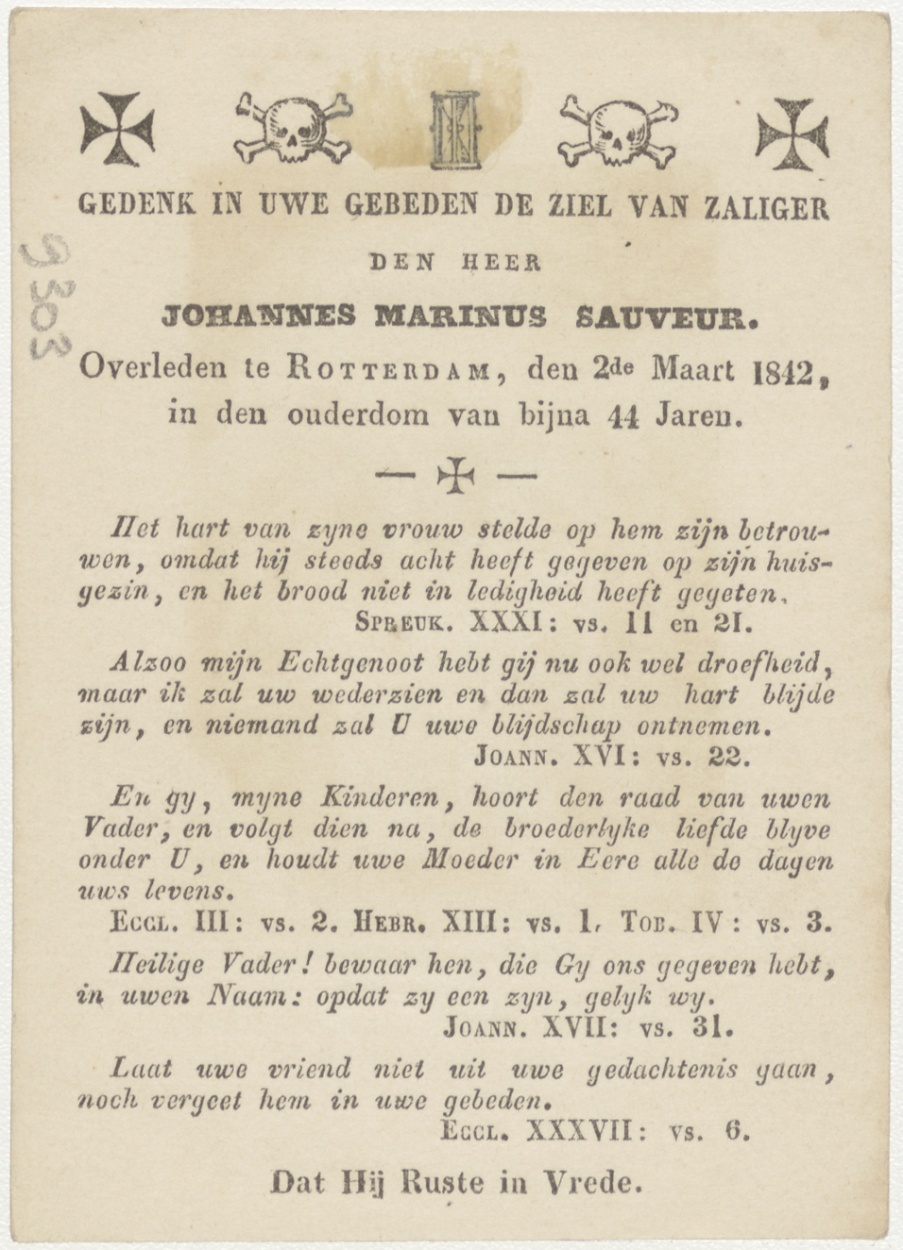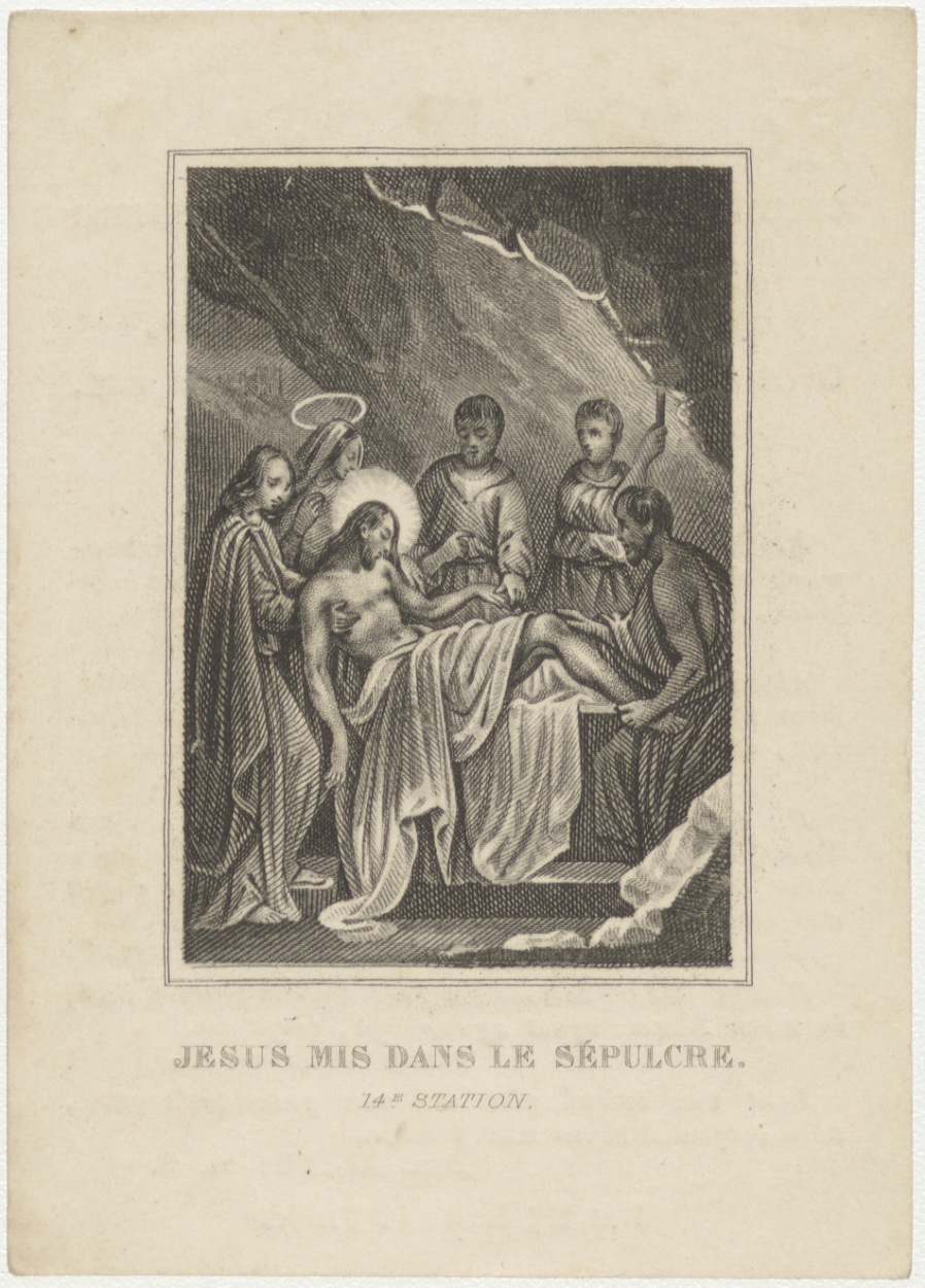 Passiescène (14e statie) Graflegging van Christus, kz. Bid voor ziel Sauveur (+1842) Rotterdam
