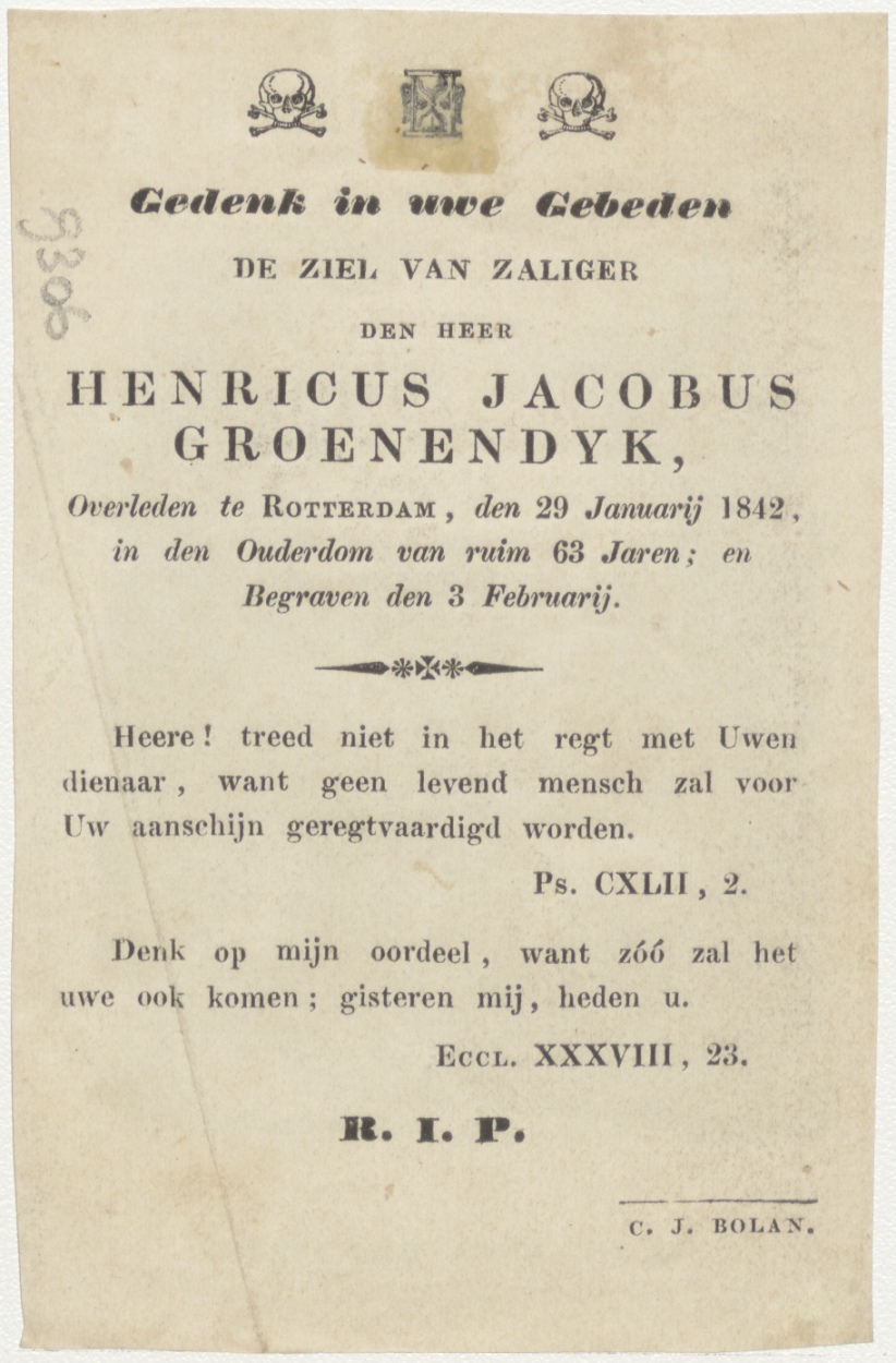 H. Johannes de Doper, kz. Bid voor ziel Groenendijk (+1842) Rotterdam