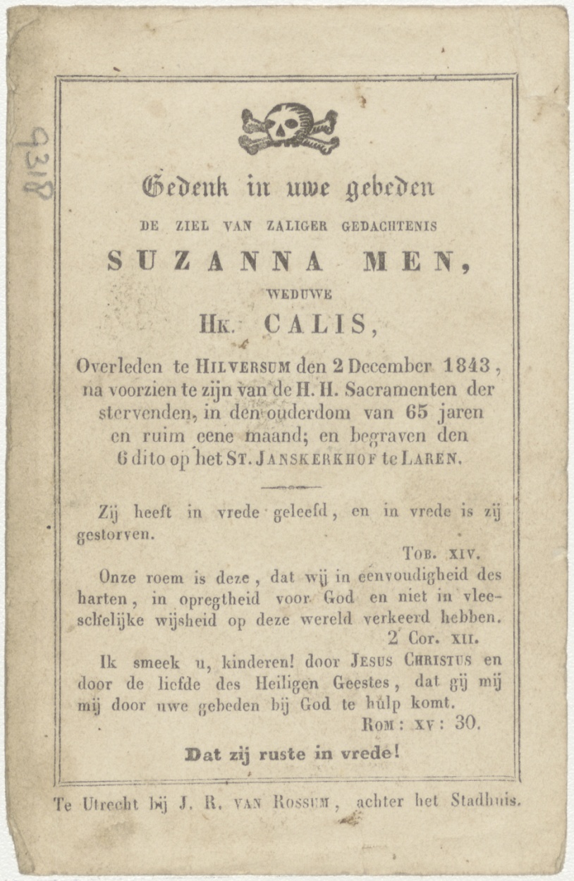 H. Catharina, kz. Bid voor ziel Men-Calis (+1843) Hilversum