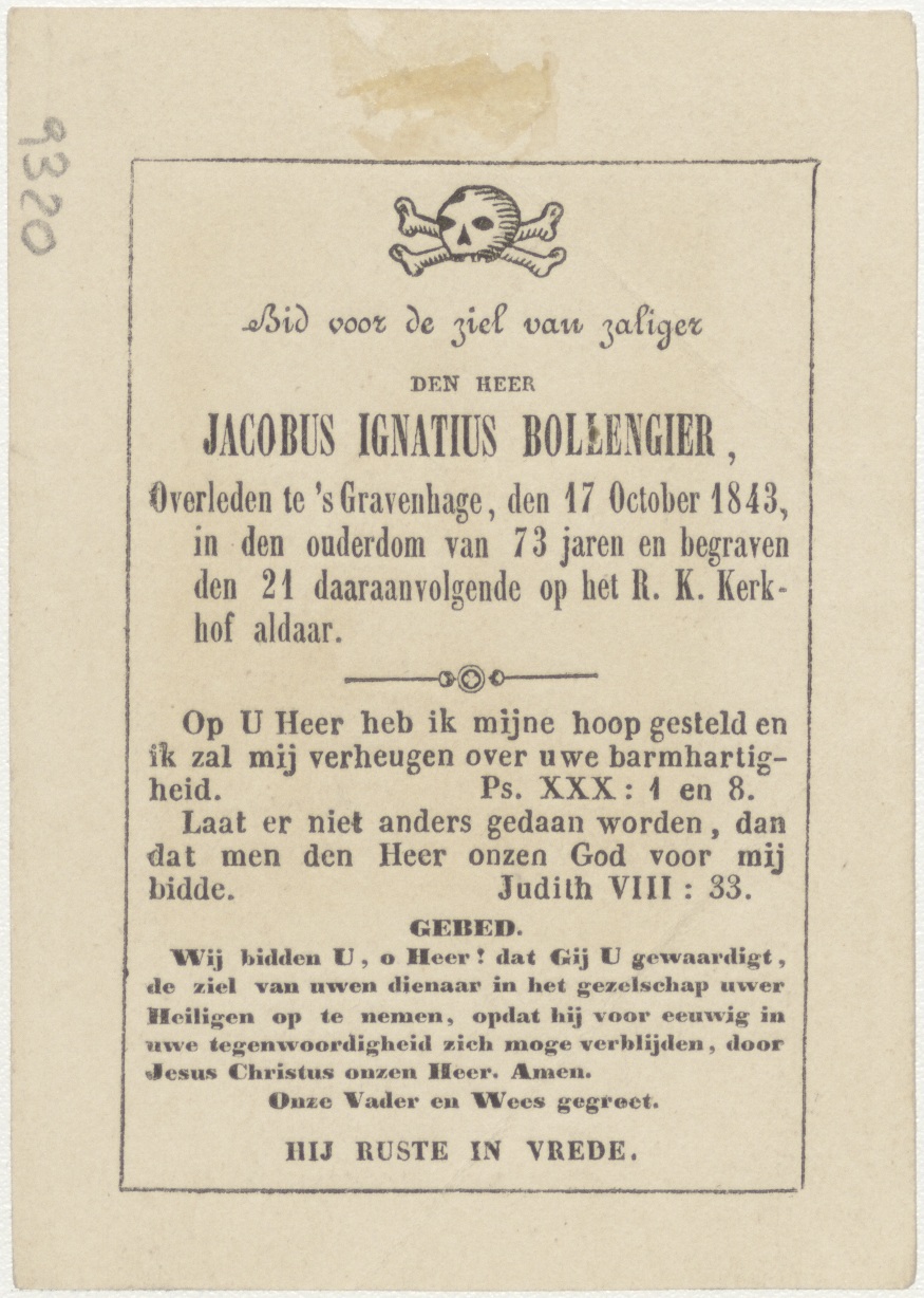 Maria met Christuskind en Johannes, kz. Bid voor ziel Bollegier (+1843) 's-Gravenhage