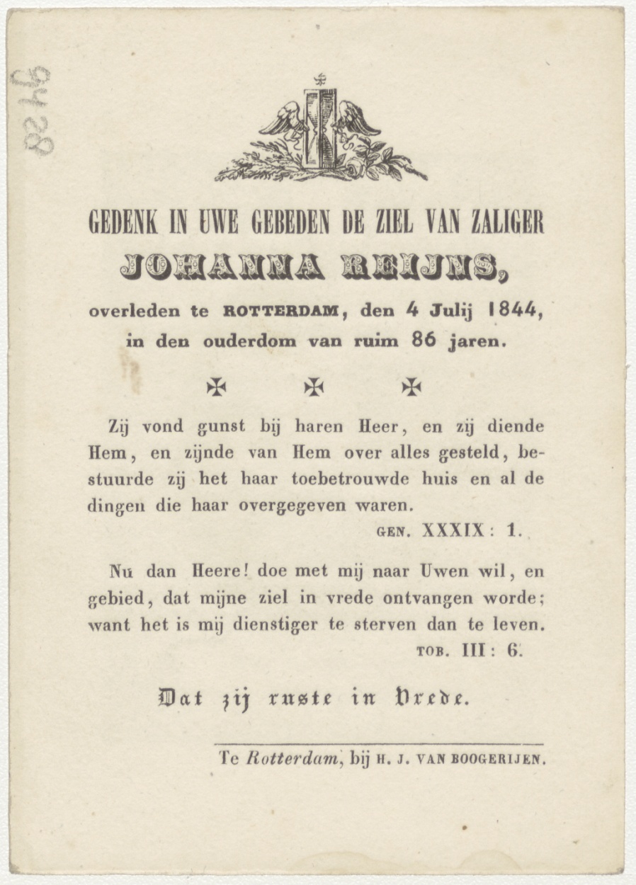 Heilige lofzangen, kz. Bid voor ziel Reijns (+1844) Rotterdam