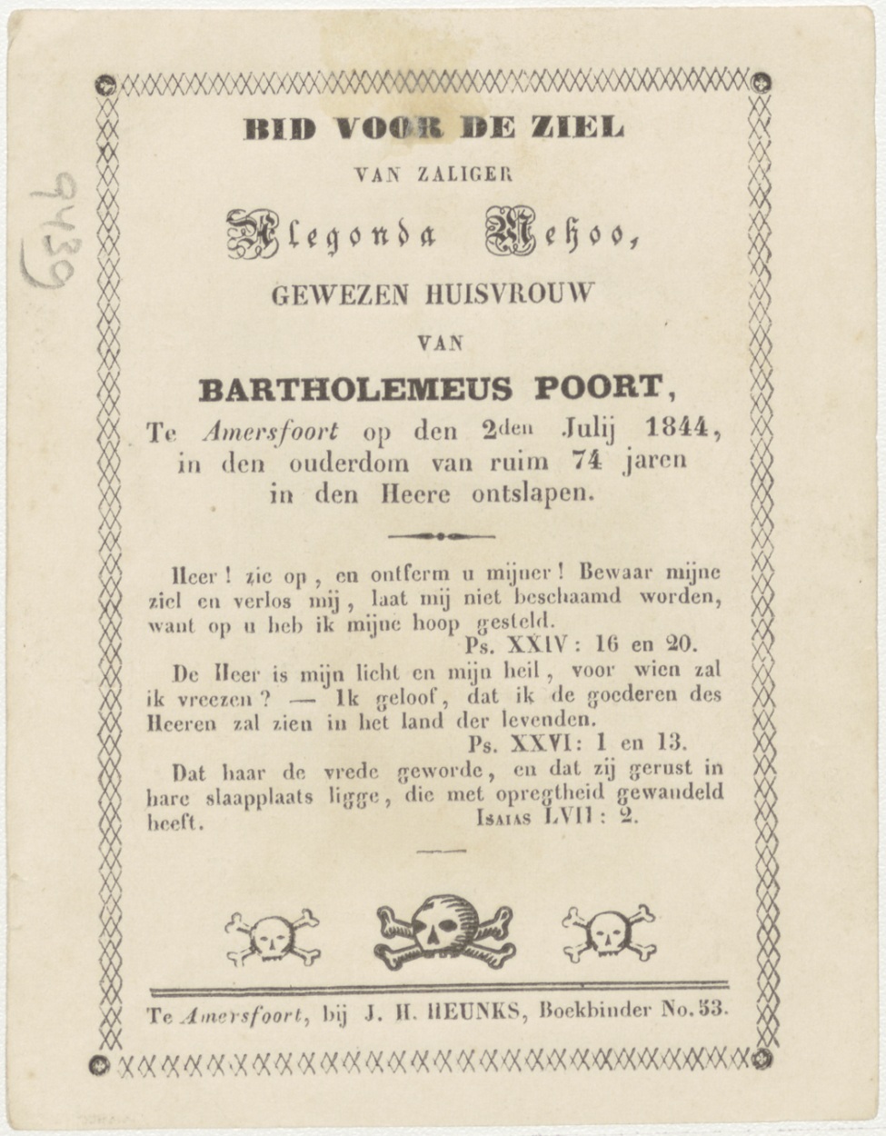 H. Vincent a Paulus (Frans), kz. Bid voor ziel Poort (+1844) Amersfoort