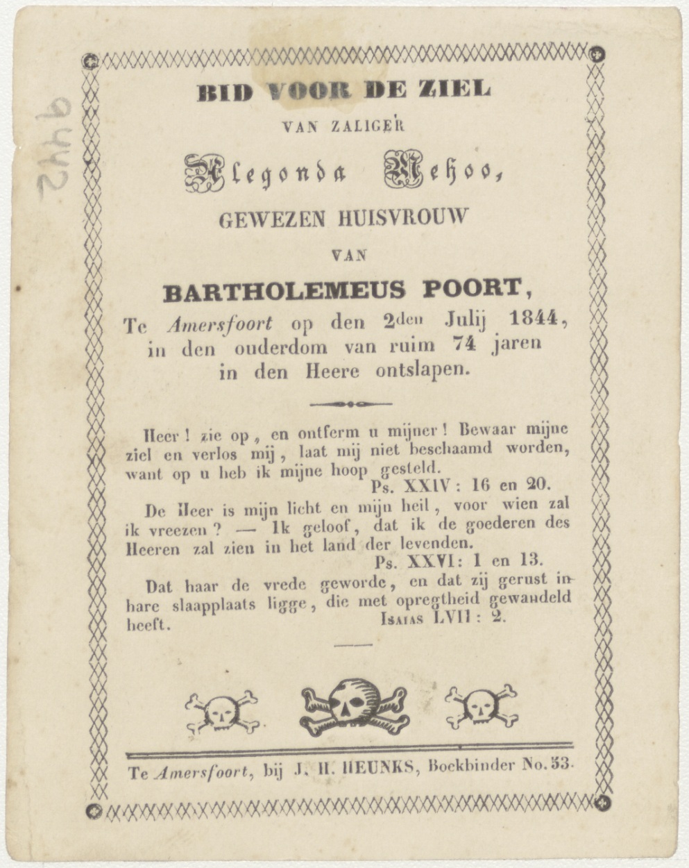 Trouw (Frans), kz. Bid voor ziel Poort (+1844) Amersfoort