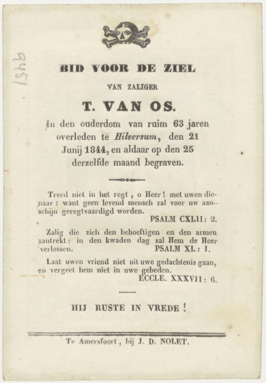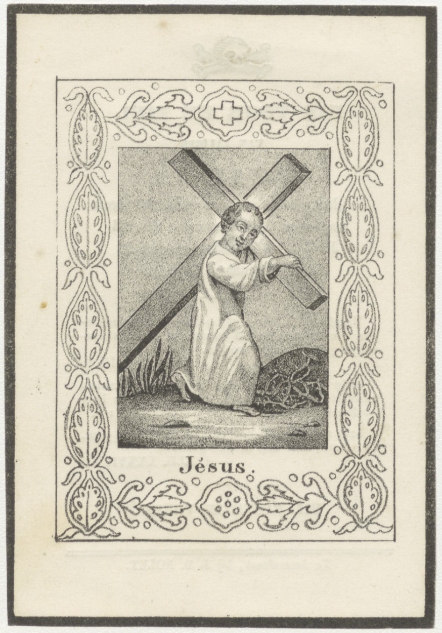 Christuskind met kruis, kz. Bid voor ziel Van Os (+1844) Hilversum