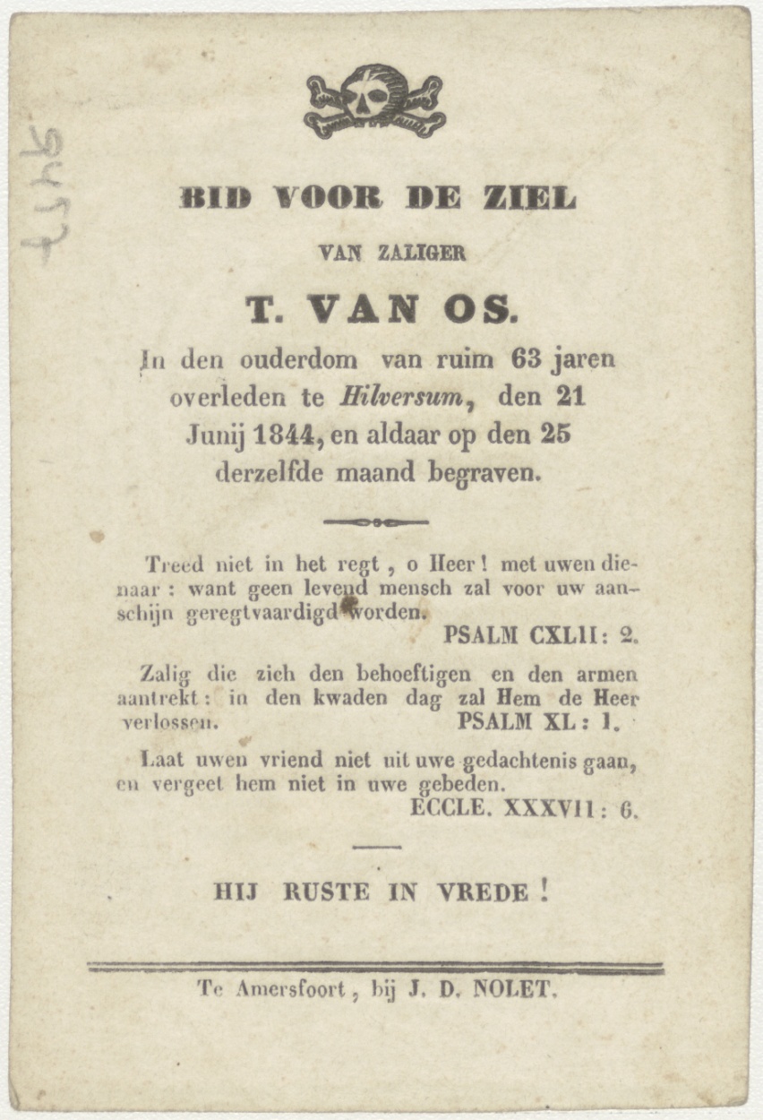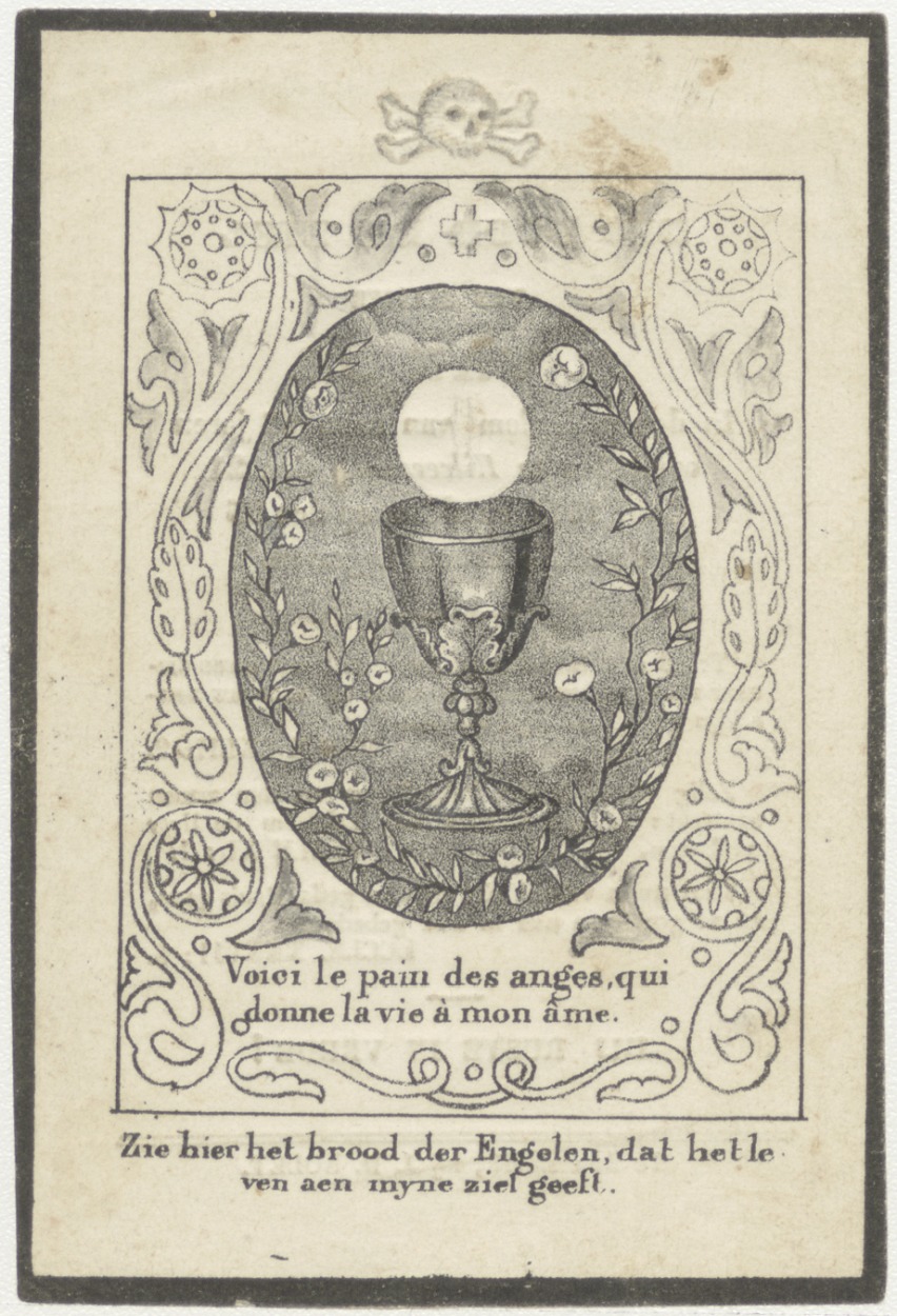 Zie hier het brood der engelen; kelk, kz. Bid voor ziel Van Os (+1844) Hilversum