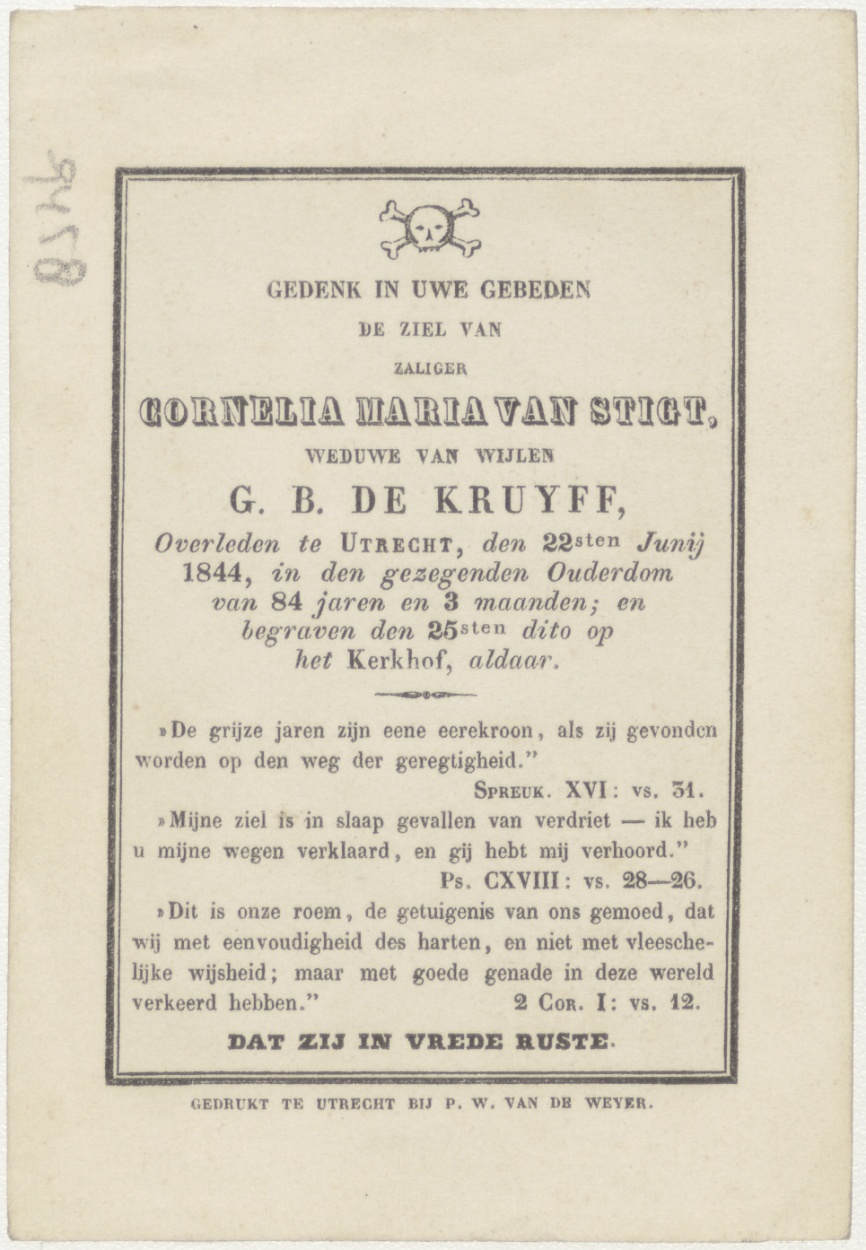 H. Kruis (Frans), kz. Bid voor ziel De Kruyff-van Stigt (+1844) Utrecht