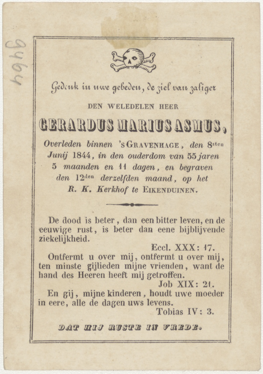 Christus intocht in Jeruzalem (Frans), kz. Bid voor ziel Asmus (+1844) 's-Gravenhage