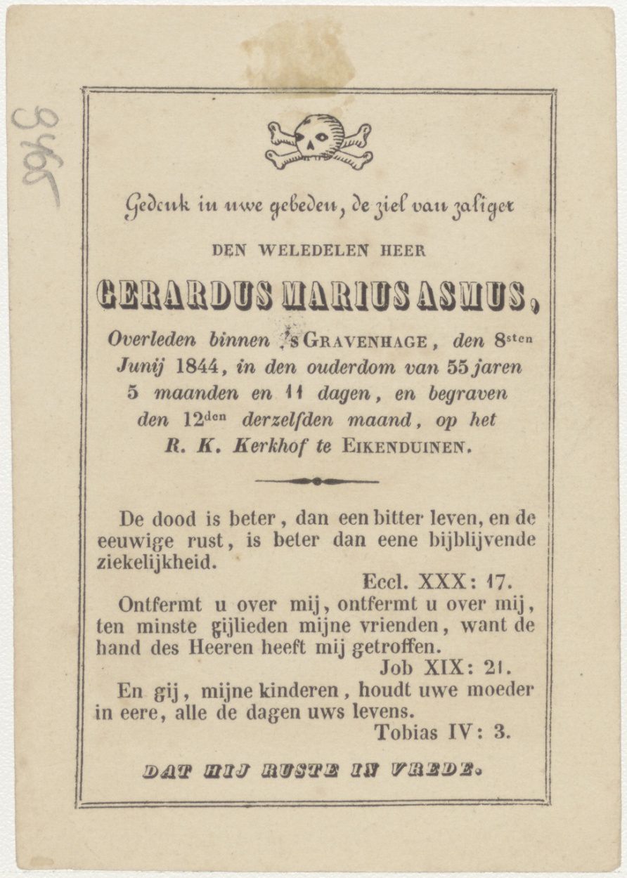 Verrijzenis van Christus (Frans), kz. Bid voor ziel Asmus (+1844) 's-Gravenhage