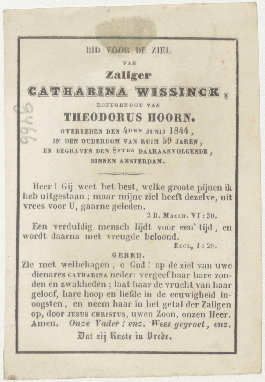 H. Franciscus de Sales, kz. Bid voor ziel Hoorn (+1844) Amsterdam