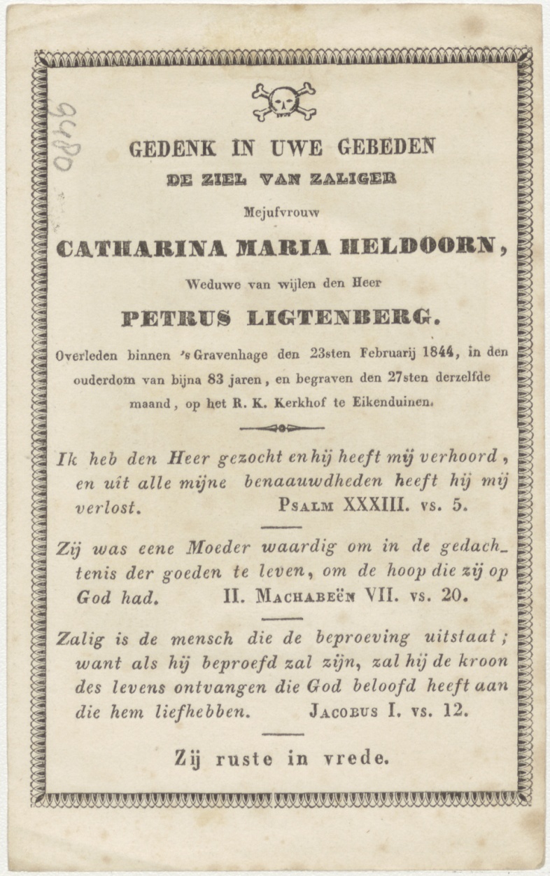 H. Rosalie (Frans), kz. Bid voor ziel Heldoorn-Ligtenberg (+1844) s-Gravenhage
