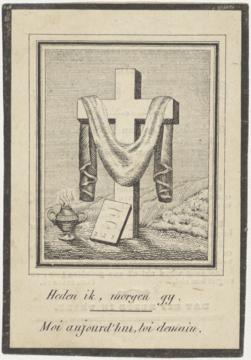 Heden ik morgen gij: grafsteen, kz. Bid voor ziel Van der Leiden Willemsz (+1844) Hilversum