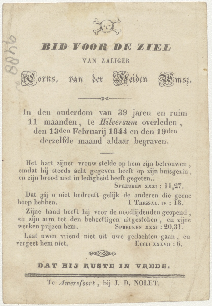 H. Augustinus, kz. Bid voor ziel Van der Leiden Willemsz (+1844) Hilversum
