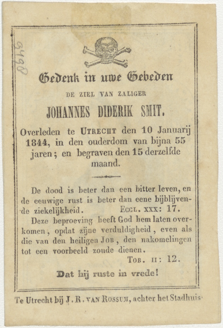 H. Denis, kz. Bid voor ziel Smit (+1844) Utrecht