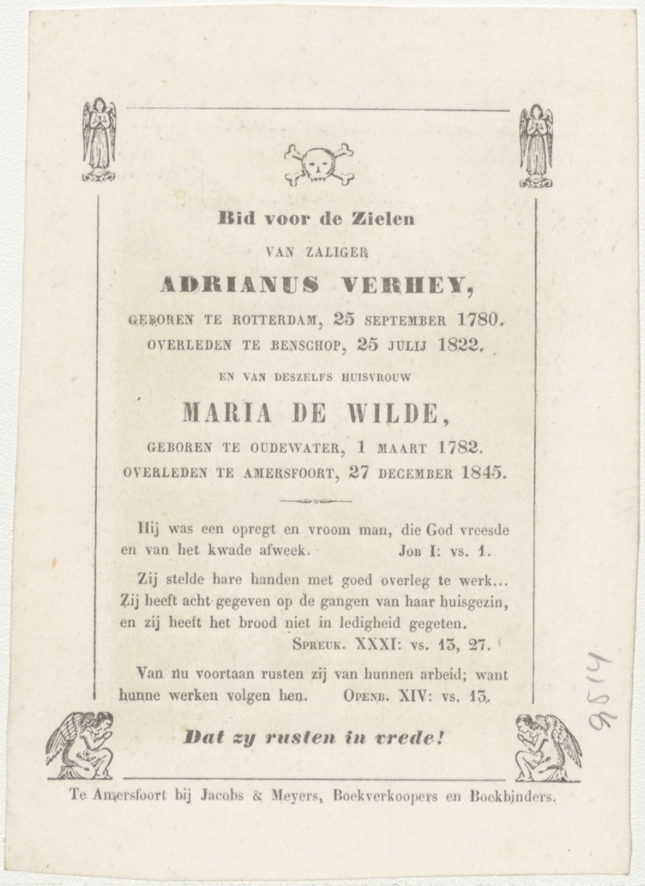 H. Familie, kz. Bid voor ziel Verhey-de Wilde (+1845) Rotterdam