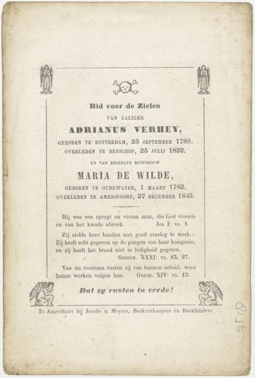 Annunciatie (Frans), kz. Bid voor ziel Verhey-de Wilde (+1845) Rotterdam