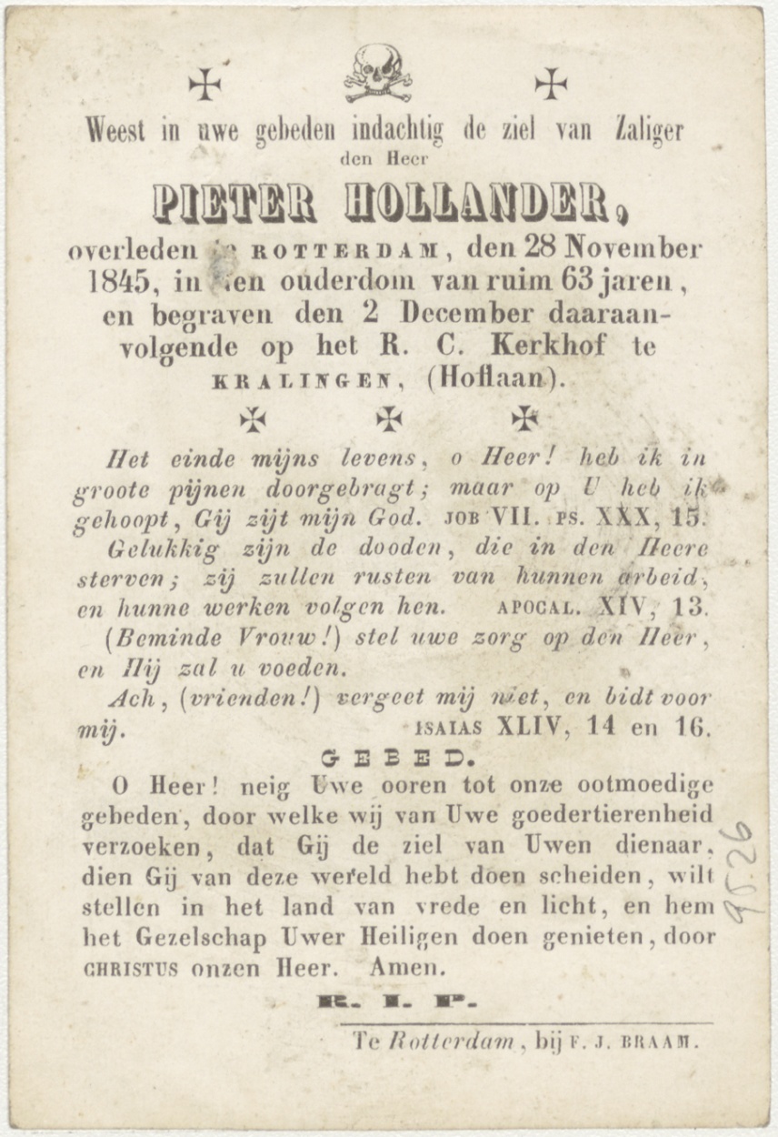 Annunciatie (Frans), kz. Bid voor ziel Hollander (+1845) Rotterdam