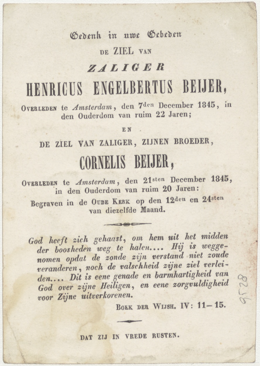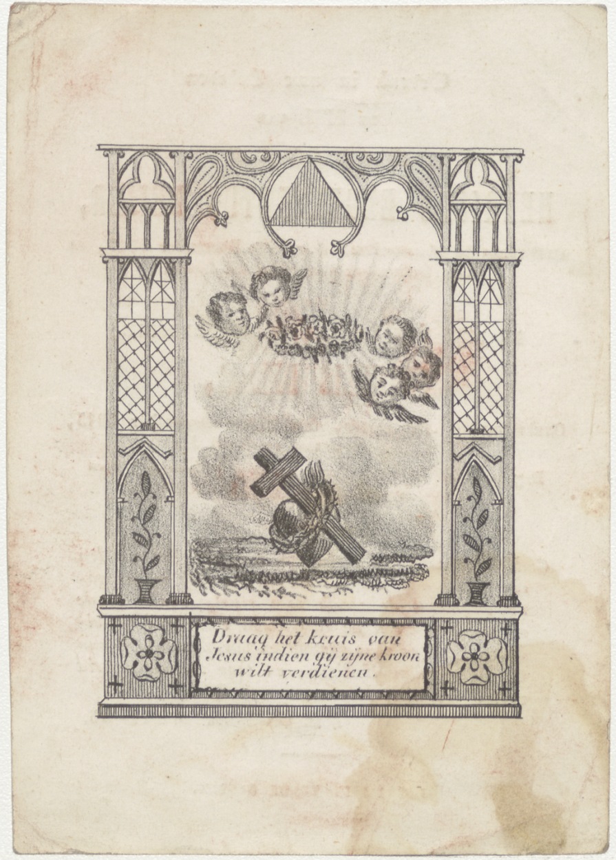 Draag het kruis van Jezus... kruis met hart, kz. Bid voor ziel Beyer (+1845) Rotterdam, dubbelgebruik twee broers 7 en 21 dec.