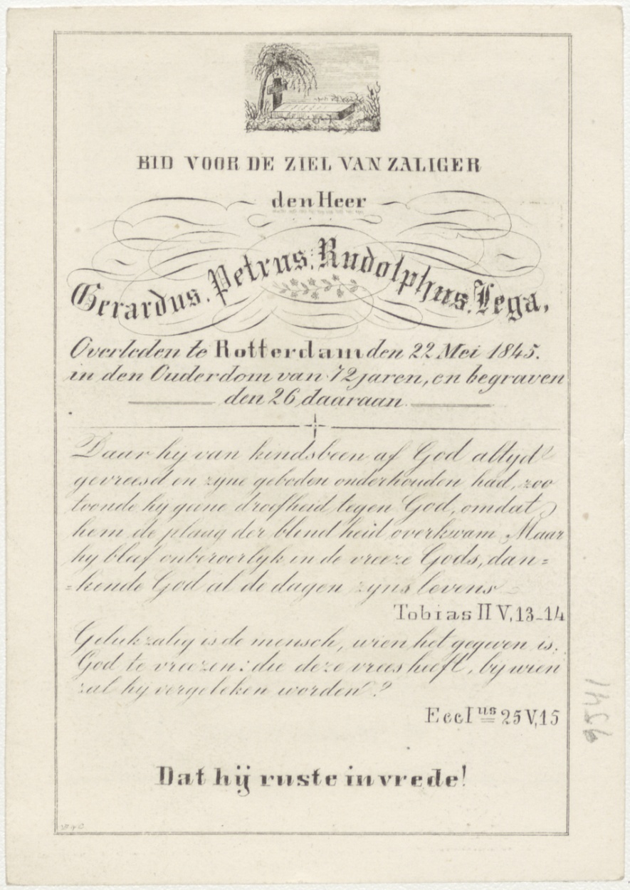 H. Marguerite, kz. Bid voor ziel Lega (?) (+1845) Rotterdam